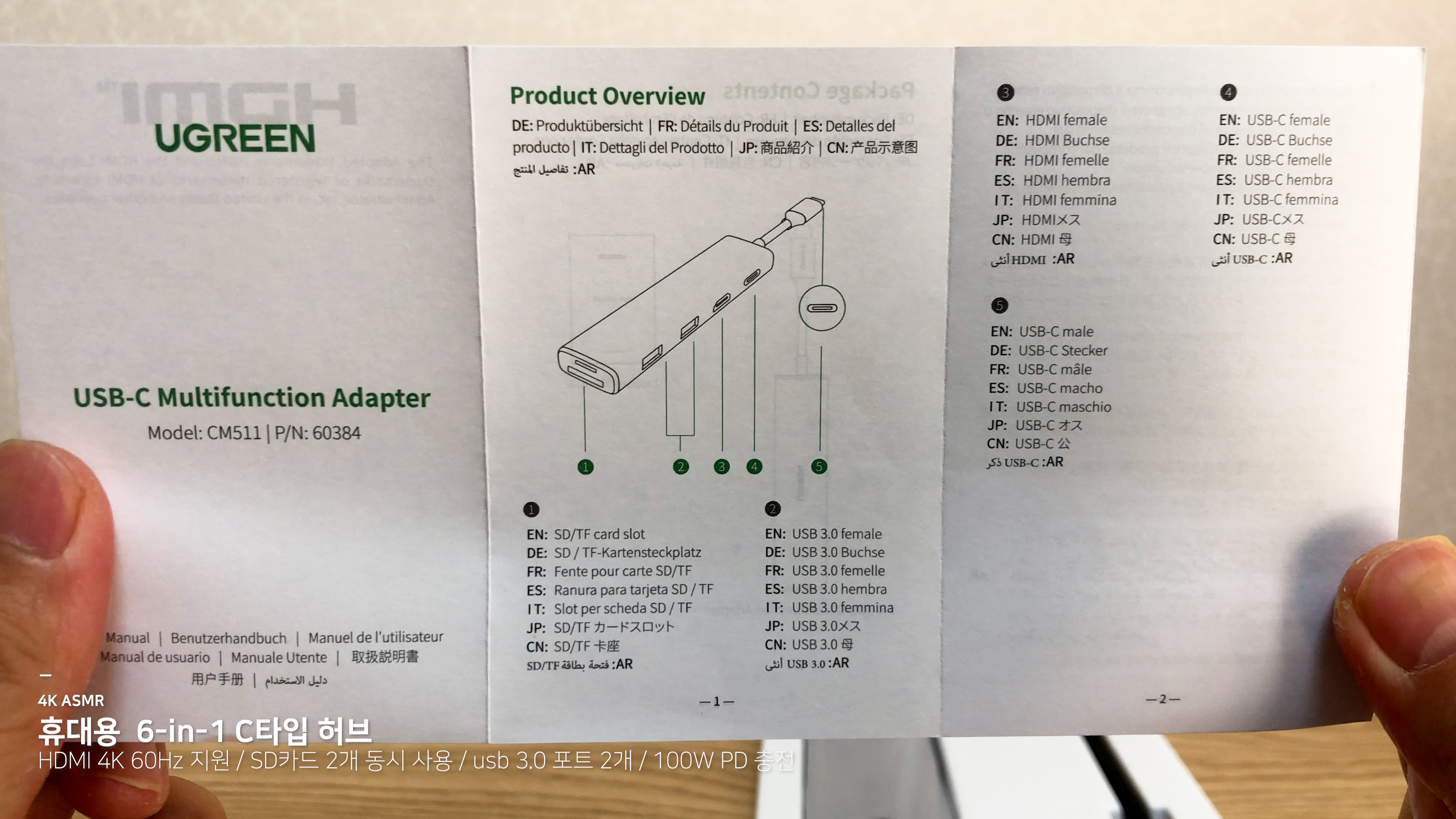 유그린 6 in 1 C타입 HDMI 4K 60Hz 지원 멀티허브 CM511