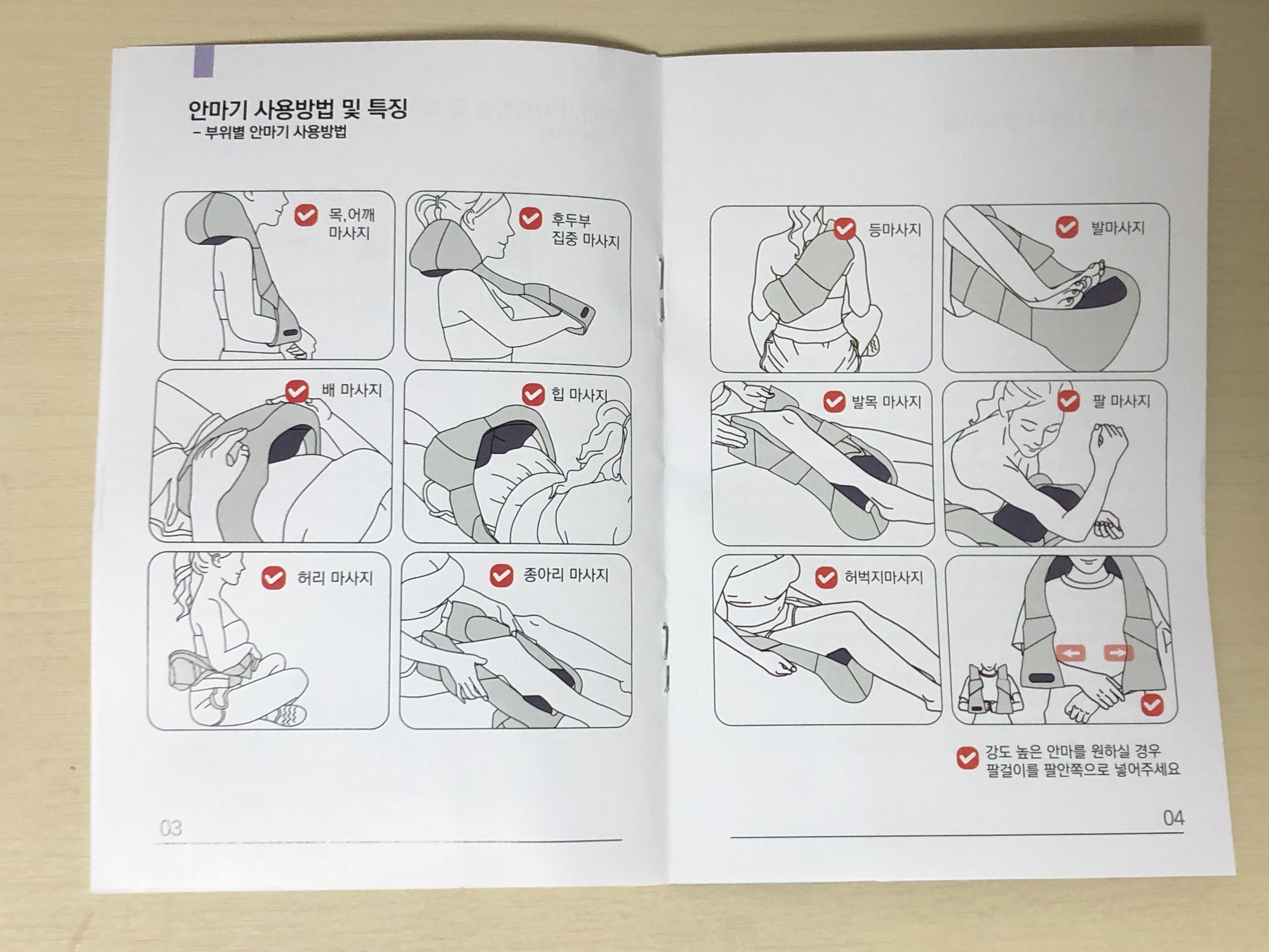 원하는 곳에 마사지 할 수 있습니다.