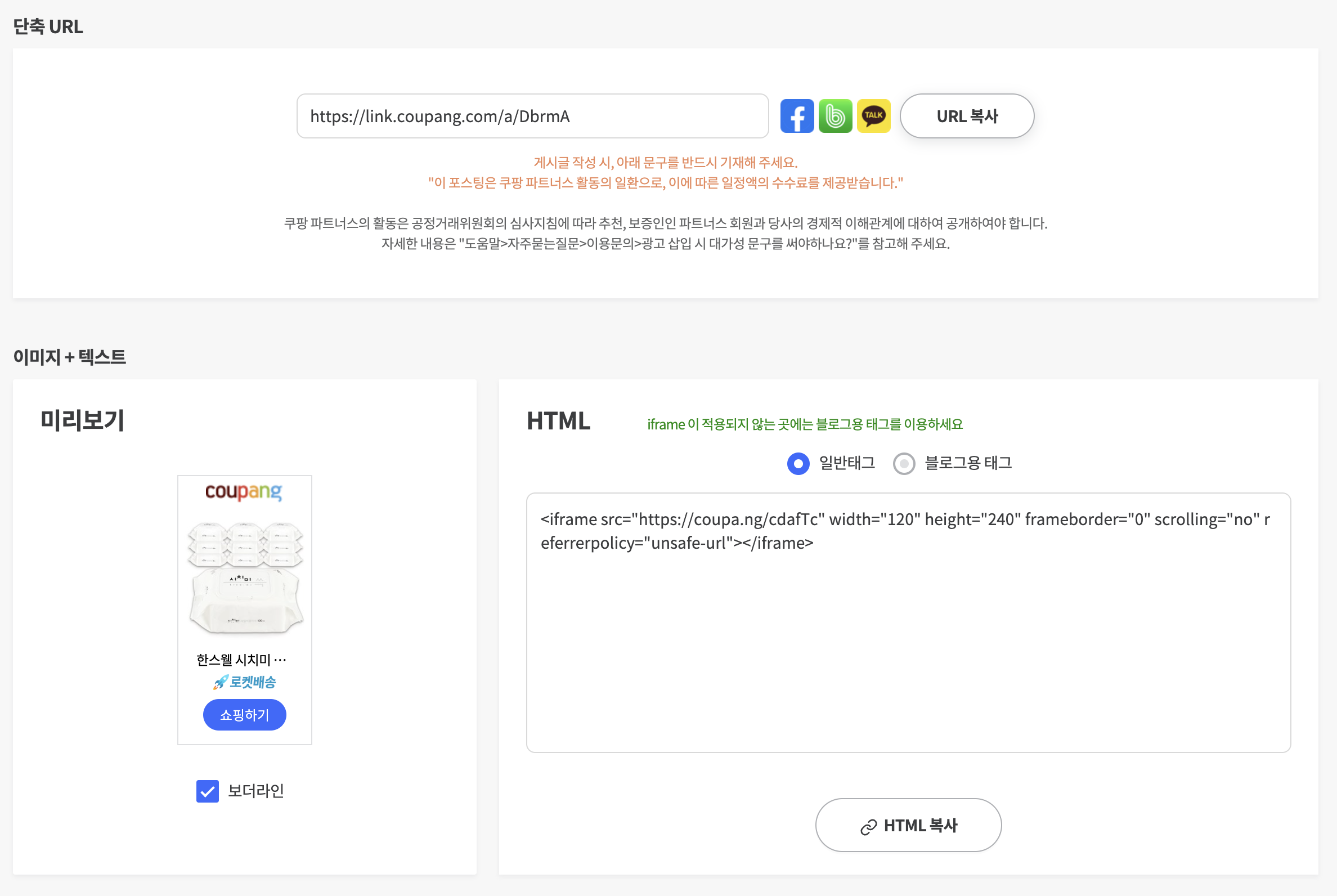 쿠팡 파트너스 추천인 ID : AF4053611 등록 시 1% 추가 적립(한달) / 추천 링크 생성 방법 본문
