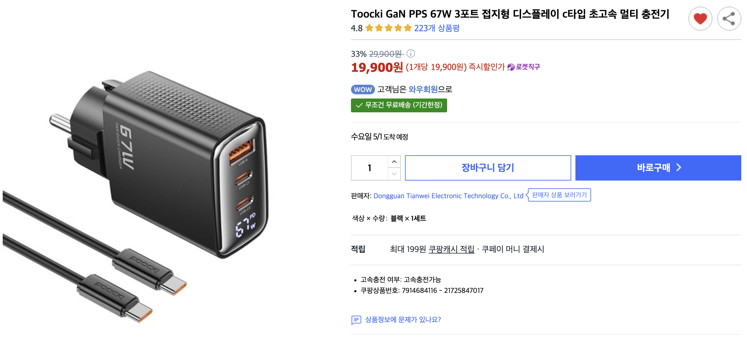 1만원대 67W 접지 PD 충전기 + c to c 100W 충전선 (feat. 로켓직구) 본문