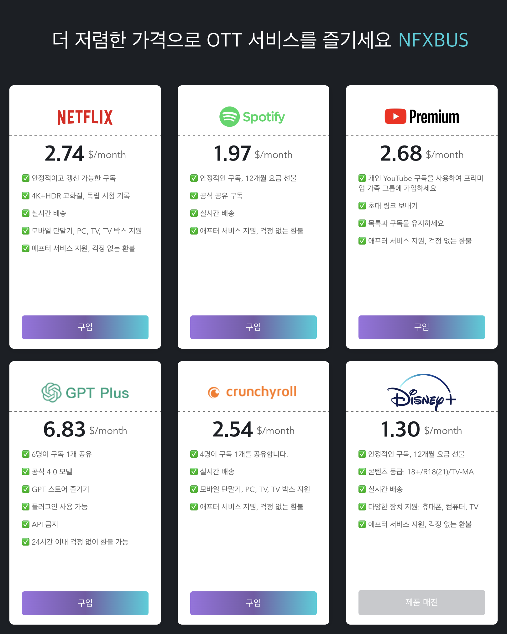 유튜브 프리미엄, 스포티파이, 넷플릭스 등