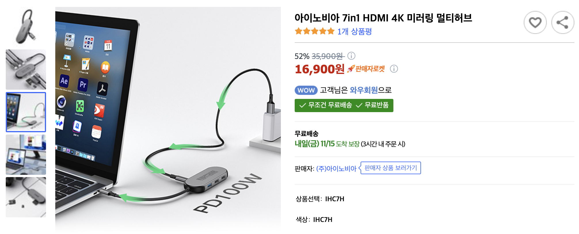 아이노비아 7in1 HDMI 4K 미러링 멀티허브 - USB허브 | 쿠팡
