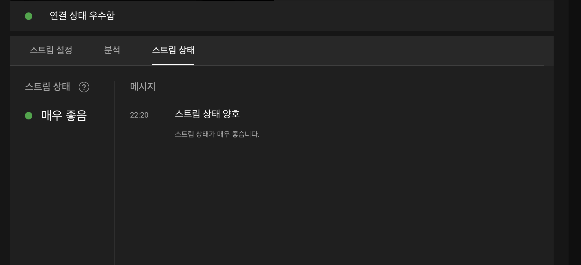 OBS로 유튜브 생중계 중 "스트림의 현재 비트 전송률(2619.12Kbsp)이 권장 비트 전송률보다 낮습니다. 6800Kbps의 스트림 비트 전송률을 사용하는 것이 좋습니다."라는 메세지가 나타나는 이유
