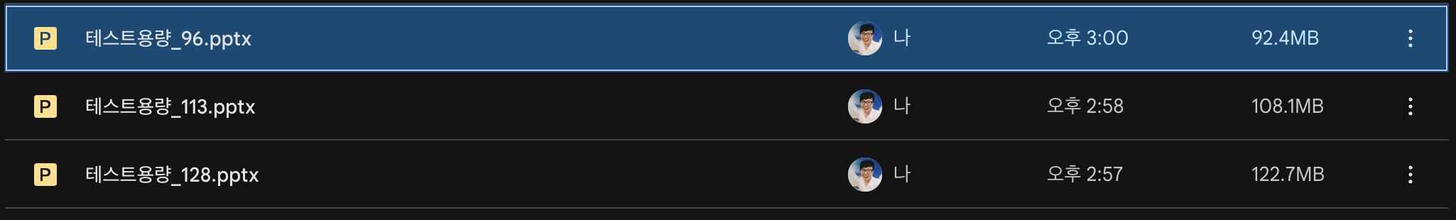어느 정도 용량의 pptx 파일이면 미리보기를 생성할 수 있는지 테스트를 해보았습니다.