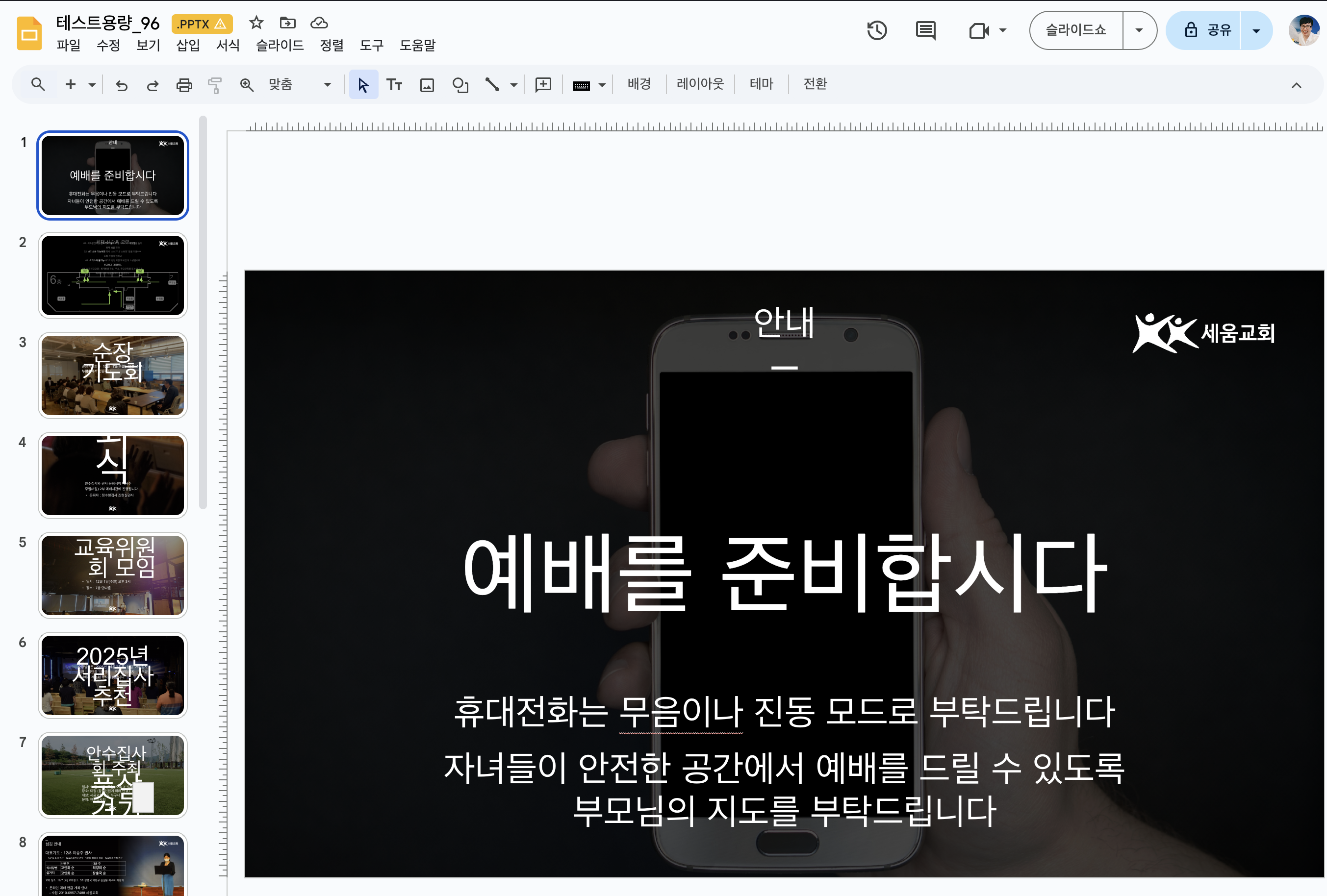 확인해 보니 구글 드라이브에 올린 MS 파워포인트 파일을
