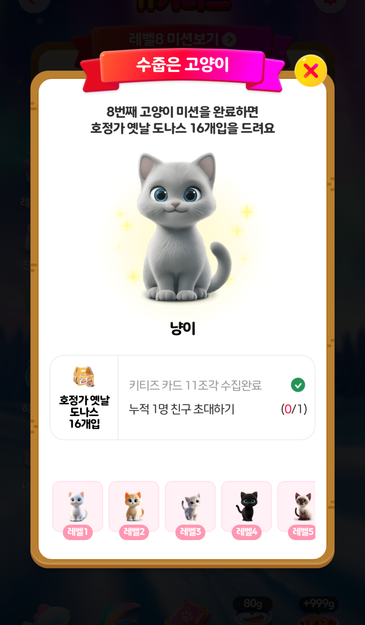 11번가엔 11키티즈 라는 고양이 키우는 미니 게임이 있습니다. 매일 특정 미션을 하면 고양이에게 줄 수 있는 사료를 주는데, 이 중 친구를 초대해야 하는 미션이 있어요. 저는 이미 친구를 추가했었네요!
