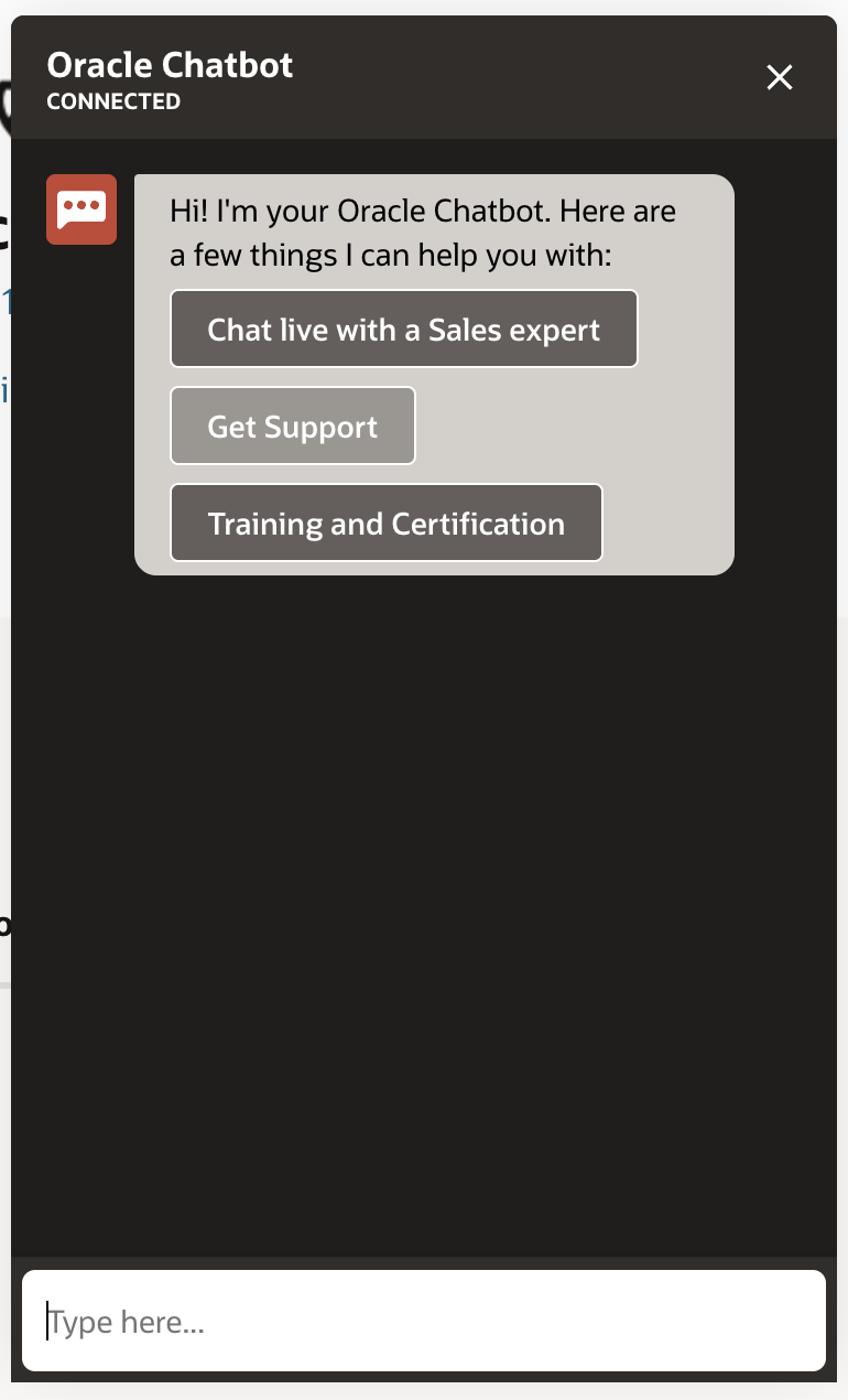 https://www.oracle.com/corporate/contact/ - “Open a Live Chat” 버튼을 눌러 상담을 시작합니다.