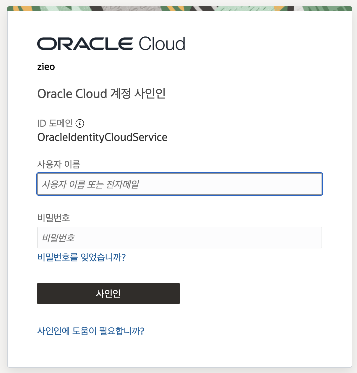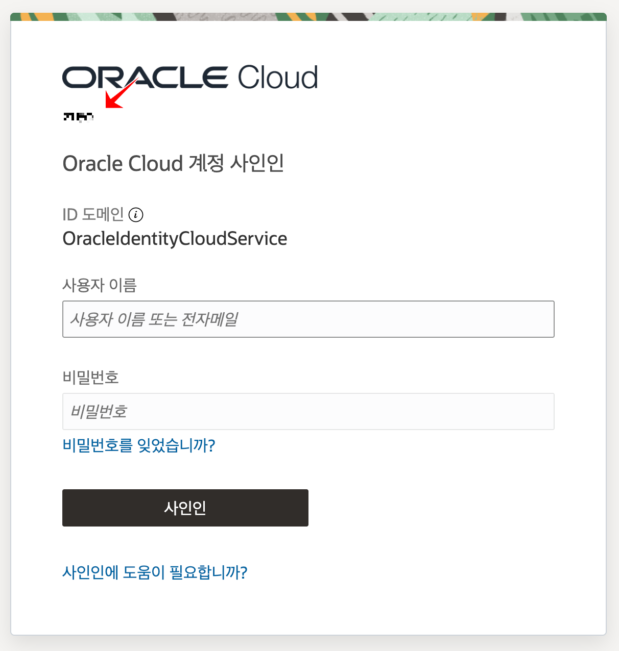 참, Tenancy Name은 OCI에서 사용하는 클라우드 계정 이름인데, 최상위 계정이라고 보시면 됩니다. 해당 Tenancy 아래의 모든 클라우드에 대한 권한과 비용을 책임지어야 하지요. 아래 로그인 화면의 빨간 화살표로 표시한 부분 입니다.
