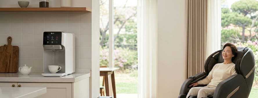- 정수기: 매번 물 끓여 드시는 부모님 수고를 덜어드릴 수 있어. 냉온 정수부터 위생 케어까지 다 돼서 편리함이 엄청나지.