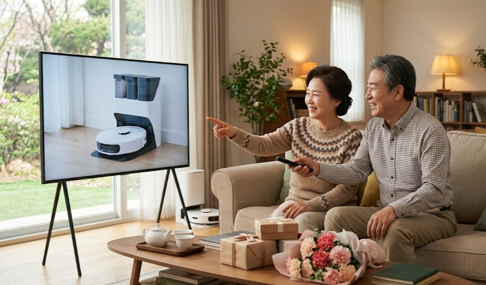 부모님이 청소할 때 허리를 숙이거나 무릎을 굽히는 일이 많잖아. 로봇청소기는 그런 부담을 줄여주고, 외출 중이나 쉬는 시간에도 알아서 청소해 주니까 실용적인 선물로 추천하고 싶어.