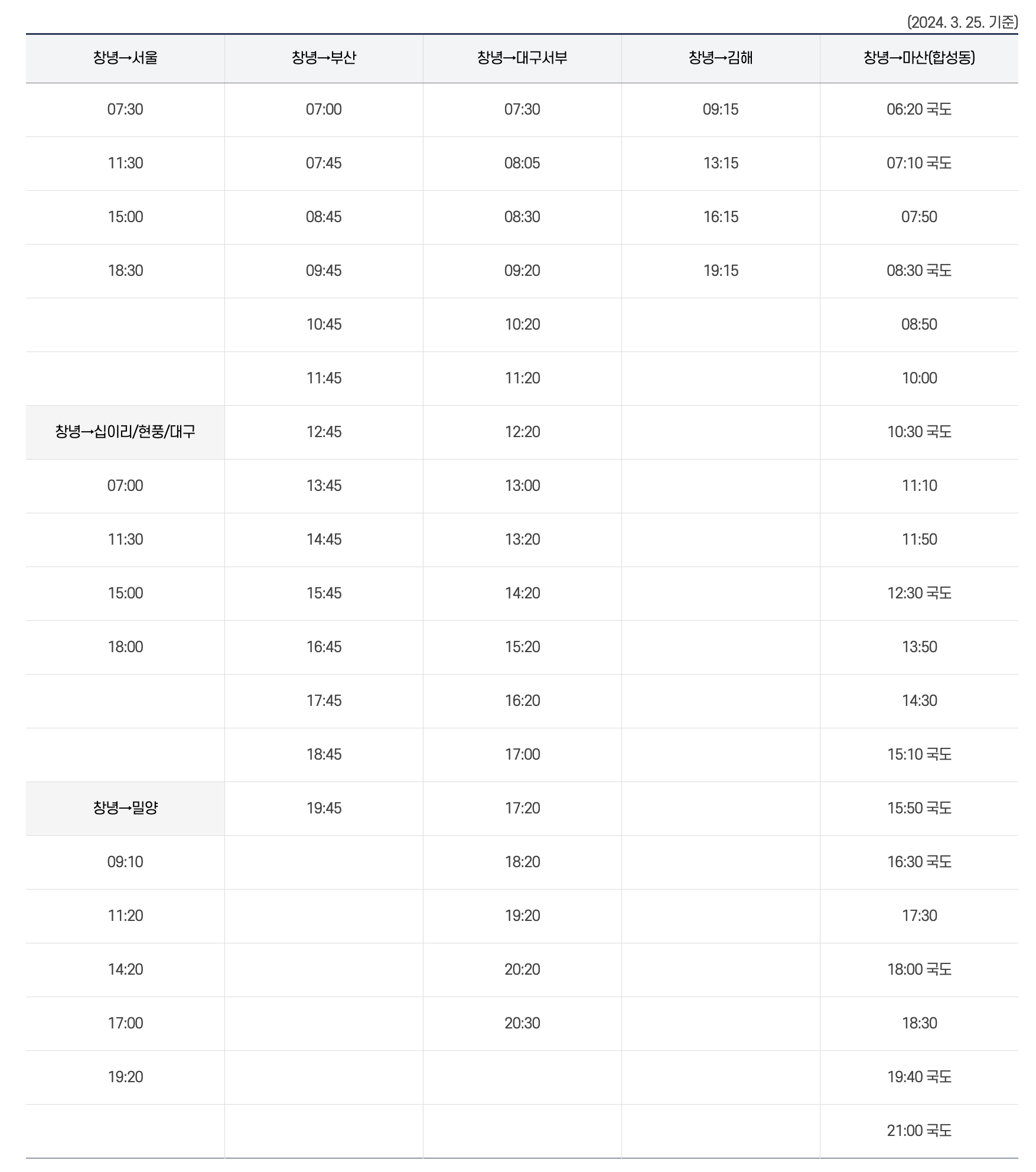 대구에서 창녕가는 버스시간표 본문